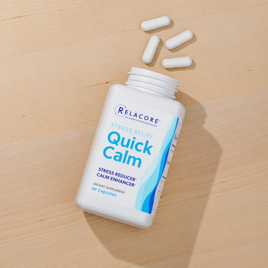 Quick Calm is also formulated with an herbal blend of ashwagandha, passionflower, and lemon balm.